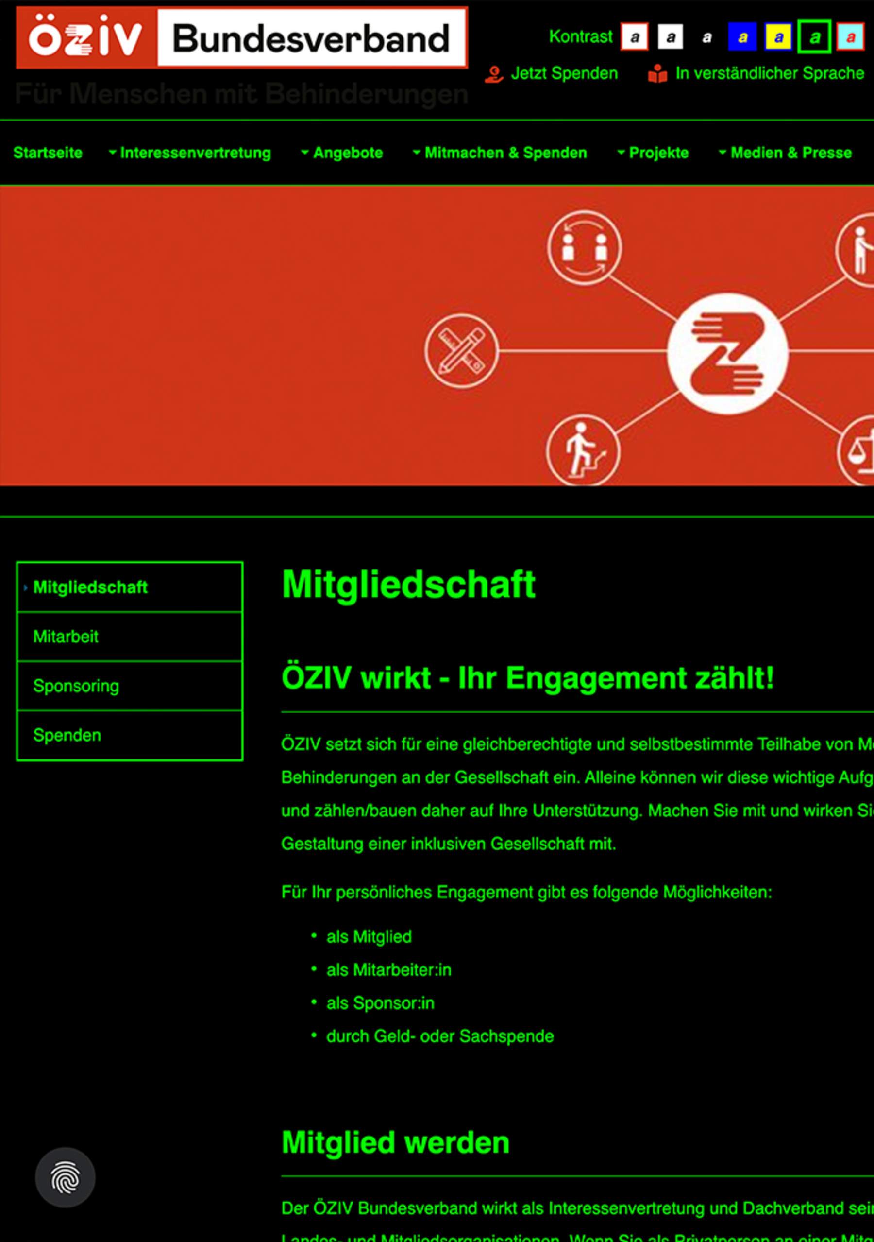 Dazu gehören u. a. eine klare Struktur, gut lesbare Texte, ausreichende Kontrastwerte,