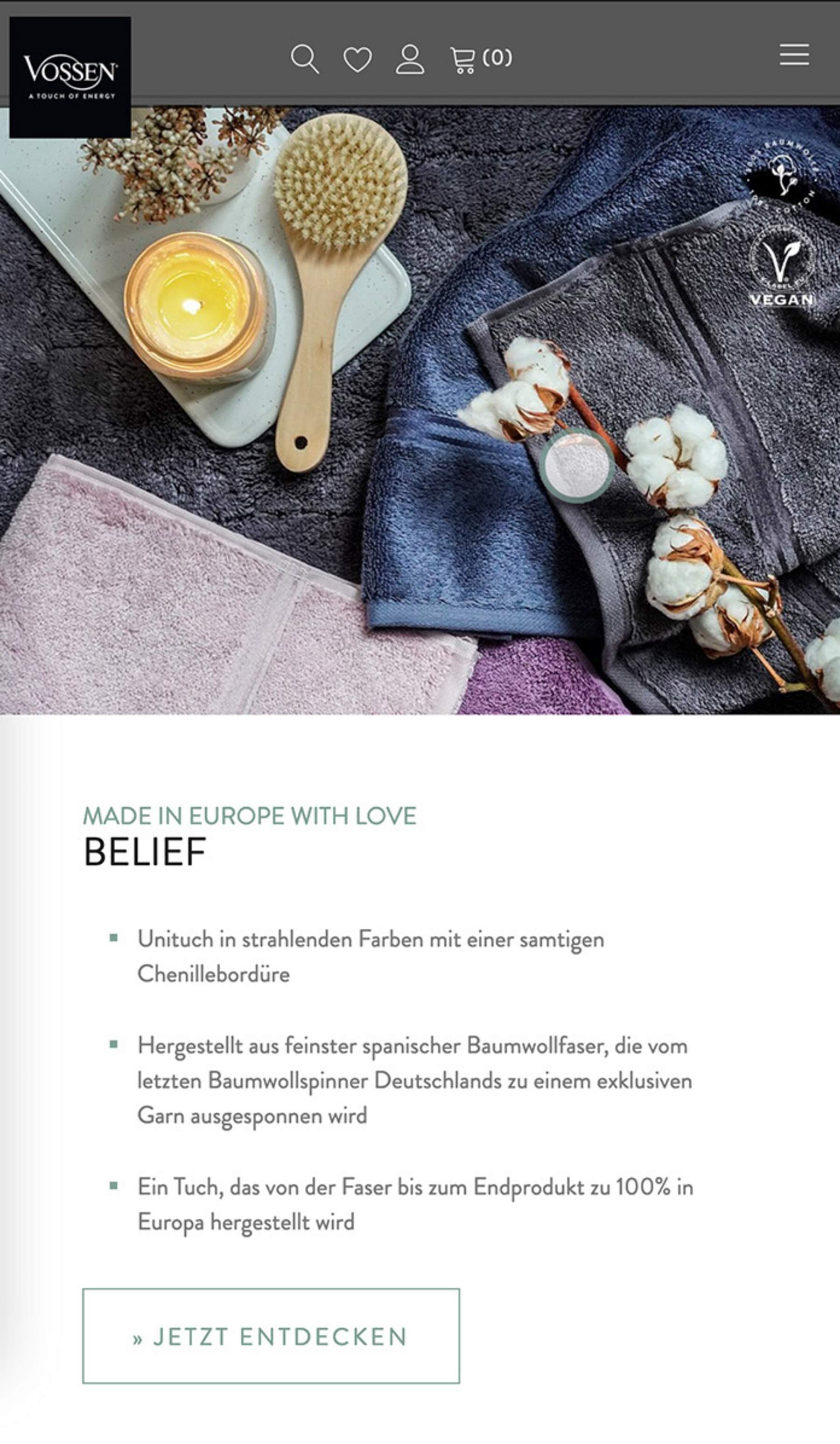 Entdecken Sie die faszinierende Welt von Vossen – dank Shopware wird das Einkaufen zu einem individuellen Erlebnis. Tauchen Sie ein in sorgfältig gestaltete Einkaufswelten, die zum Entdecken einladen. Ein absolutes Highlight ist die Produktwelt, insbesondere die High-End Handtücher, die mit dem "touch of energy" ein sicht- und spürbares Erlebnis bieten.